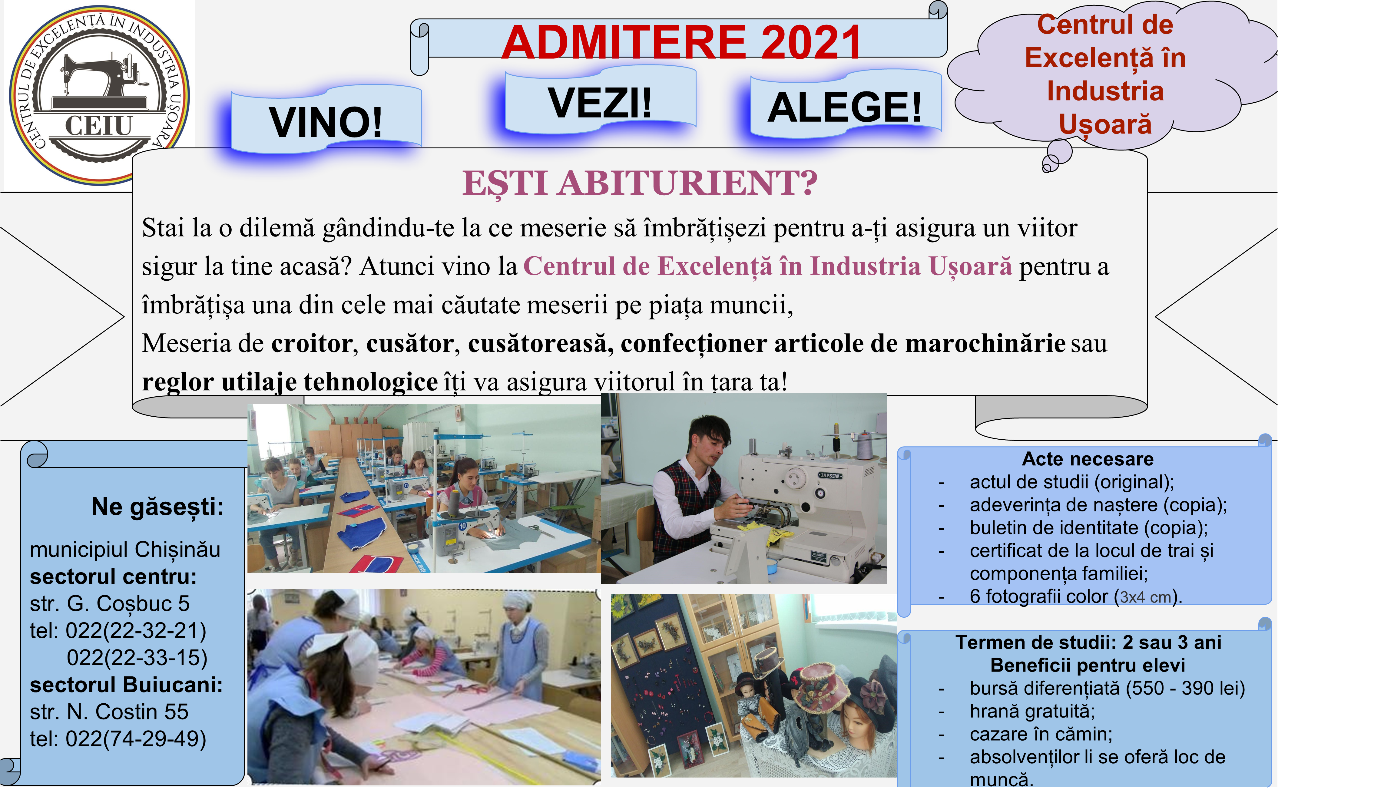 Condițiile și meseriile pentru admitere 2021